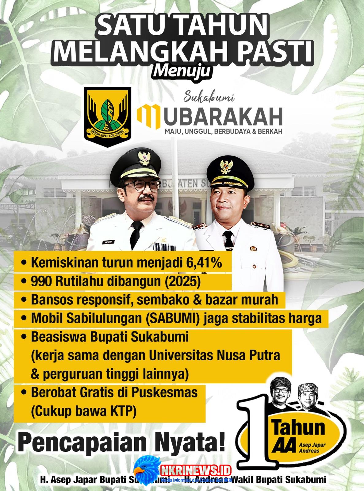 Sukabumi, Sabtu 28 Februari 2026, Di bawah kepemimpinan Bupati Sukabumi, H. Asep Japar, bersama Wakil Bupati H. Andreas, Kabupaten Sukabumi terus bergerak mewujudkan visi besar: Sukabumi Mubarokah — maju, unggul, berbudaya, dan berkah.