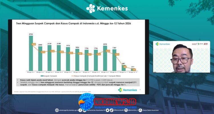 Kasus Campak di RI Kasus Campak di RI Terus Menurun Hingga 93% Sejak Awal Tahun 2026 Berita|March 31, 2026by aaruslan007@gmail.com Jakarta — Kementerian Kesehatan (Kemenkes) mencatat penurunan drastis pada kasus penyakit campak